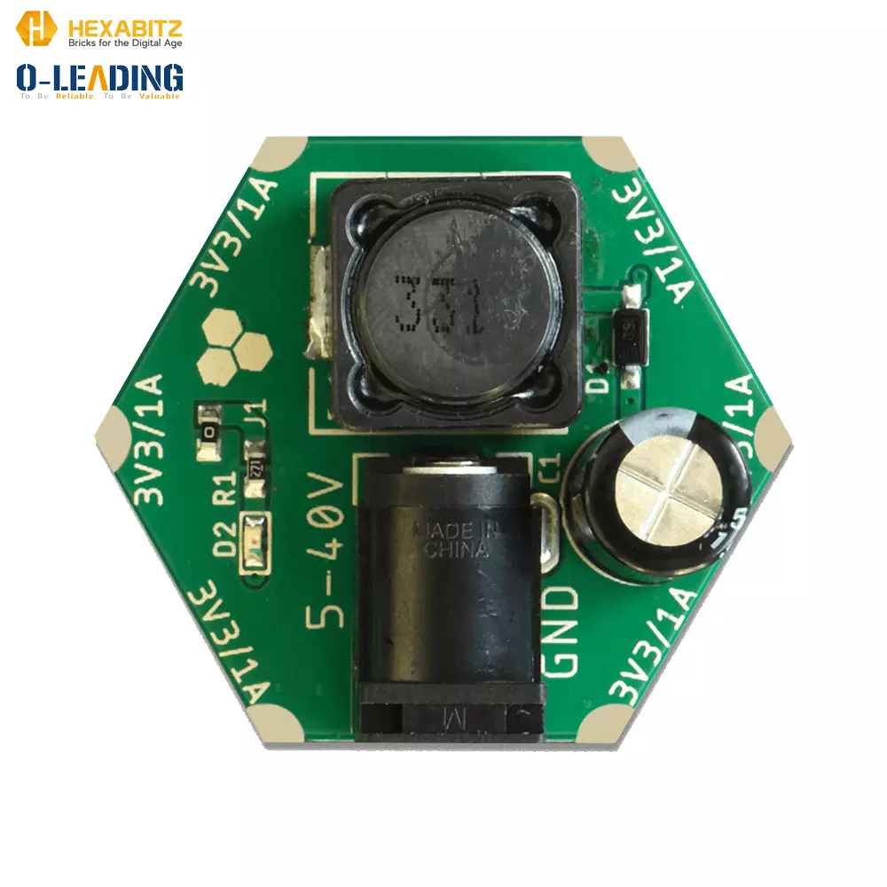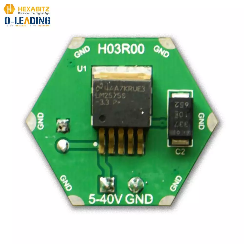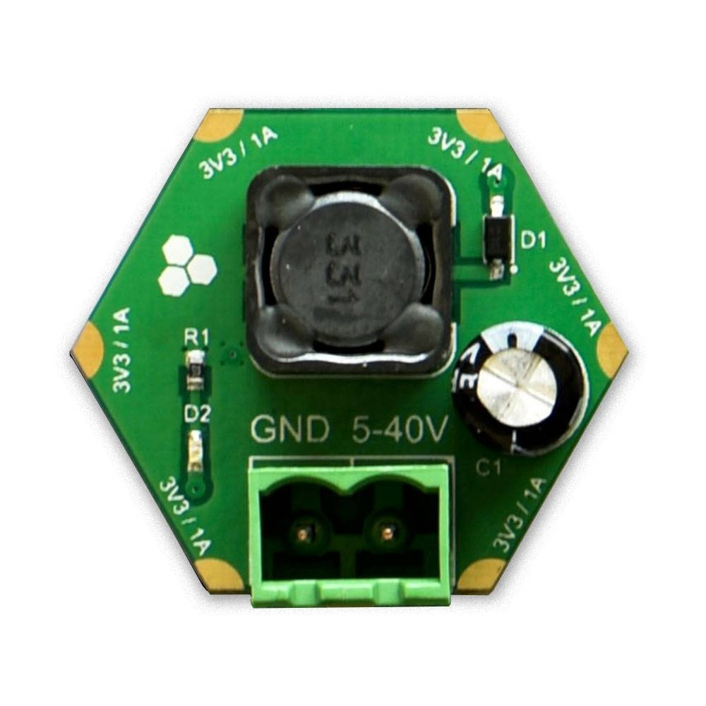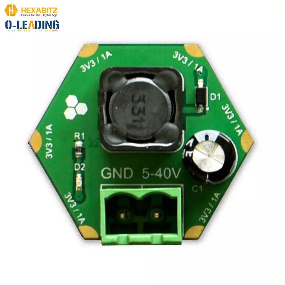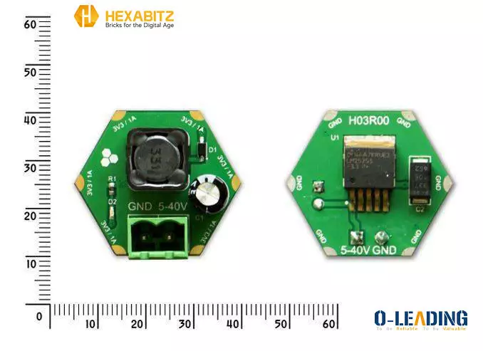 H03R0x is a compact DC-DC buck power supply with a 3.3V/1A DC output and 5-40V DC input.